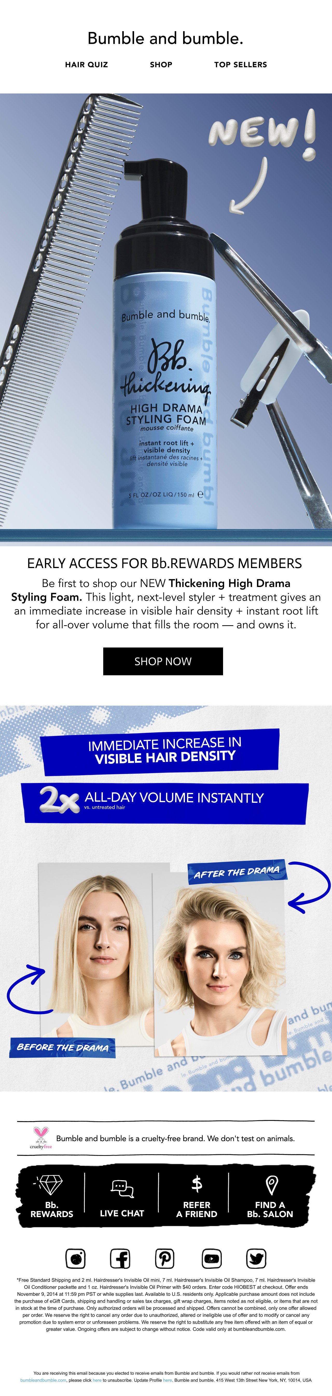 Highlights: Our Thickening High Drama Styling Foam and Bond-Building TripleBond Flash Rinse campaigns, and the launch of the brand on Amazon, which saw sales 30% above projections in its debut month.